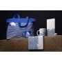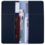 Обложка органайзера выполнена из материала Butterfly со слепым тиснением и печатью. В процессе тиснения на белой поверхности проявляется синий цвет. - Тиснение