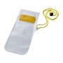 Водонепроницаемый чехол Mambo. Чехол с матовой белой задней панелью, прозрачным окном для тач скринов спереди, замком - застежкой и цветным клапаном на застежке-липучке. Шнурок на шею с кулиской. ПВХ.