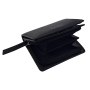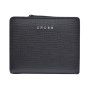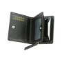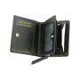 Кошелёк состоит из двух отделений. Первое отделение закрывается на кнопку, включает в себя: два отделения для купюр, три отделения для кредитных карт, одно отделение с прозрачным окошком, два скрытых боковых кармана. Второе отделение закрывается на молнию, разделяется перегородкой и предназначено для мелочи.