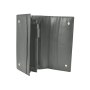 Кошелек закрывается на две кнопки, включает в себя: два отделения для купюр, одно отделение на молнии, восемнадцать отделений для кредитных карт, два универсальных кармана, один скрытый карман. С оборотной стороны кошелька есть универсальное отделение на молнии.