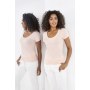 Воротник выполнен резинкой 1х1 с эластаном. Укрепляющая тесьма по вороту.
