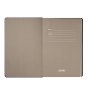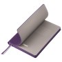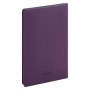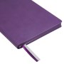 Недатированный ежедневник отличается современным технологичным дизайном и оригинальным цветовым ансамблем. Гибкая матовая обложка со скругленными уголками выполнена из искусственной кожи, имитирующей покрытие в стиле Hi-Tech. Переплетный материал с вертикальным рифлением, бархатистый, со слегка прорезиненным эффектом. За счет интересной рельефной фактуры прослеживается игра цвета при перемене освещения. Цвет – фиолетовый, насыщенный, плотный, однородный. Создает органичный природный тандем с матовыми форзацем и нахзацем серого цвета. Срез матовый, в тон обложки. Страницы со скругленными уголками приятного глазу теплого светло-кремового цвета. Выполнены из гладкого шелковистого офсета. Ежедневник дополнен двойным атласным ляссе из лент серого и фиолетового цветов, имеющих глянцевый отлив.