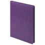 Недатированный ежедневник отличается современным технологичным дизайном и оригинальным цветовым ансамблем. Гибкая матовая обложка со скругленными уголками выполнена из искусственной кожи, имитирующей покрытие в стиле Hi-Tech. Переплетный материал с вертикальным рифлением, бархатистый, со слегка прорезиненным эффектом. За счет интересной рельефной фактуры прослеживается игра цвета при перемене освещения. Цвет – фиолетовый, насыщенный, плотный, однородный. Создает органичный природный тандем с матовыми форзацем и нахзацем серого цвета. Срез матовый, в тон обложки. Страницы со скругленными уголками приятного глазу теплого светло-кремового цвета. Выполнены из гладкого шелковистого офсета. Ежедневник дополнен двойным атласным ляссе из лент серого и фиолетового цветов, имеющих глянцевый отлив.