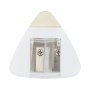 Точилка для карандашей разного диаметра и ластик в одном корпусе. Большое поле для нанесения логотипа.