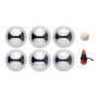 Игровые мячи изготовлены из металла. 6 штук. Чехол из полиэстера 600В на молнии. Диаметр мяча 7,3 см, вес набора 730 гр.