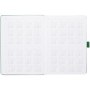 Еженедельник в твердой обложке выполнен из материала Nebraska, зеленый FF, дополнен резинкой, петлей для ручки и ляссе зеленого цвета.