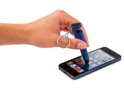 Брелок с четырьмя функциями – размещение ключей, подставка для смартфона, очистка экрана и стилус.