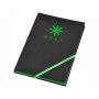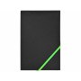Блокнот, ориентировочный формат A5 с 80 листами бежевой бумаги (70 г/м?) с диагональной эластичной застежкой и яркими неоновыми краями.