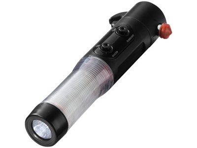 Многофункциональный автомобильный фонарь освещает расстояние до 200 м. Включает молоток для разбивания окон, нож для ремней безопасности и встроенный магнит для крепления фонаря к автомобилям. Фонарь работает в течение 36 часов при освещении (при использовании супер яркого светодиода) или 48 часов при включении красного аварийного мигающего сигнала (при использовании 9 светодиодов).
