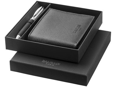 Два необходимых предмета в одном стильном подарочном наборе. Шариковая ручка с кожаным покрытием с бумажником. Эксклюзивный дизайн.