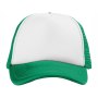 Кепка из 5 панелей Trucker. Оригинальная кепка на окружность головы 58 см с передней поролоновой частью, пластиковой сеткой сзади и пластиковой застежкой. Эта кепка полностью соответствует требованиям к соединениям AZO, формальдегиду и ПХФ. Полиэстер и поролон.