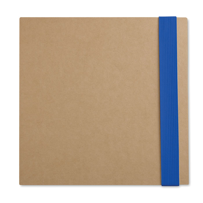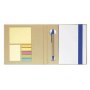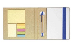 Блокнот с ручкой из переработанной бумаги с двумя блоками стикеров и разноцветными закладками.