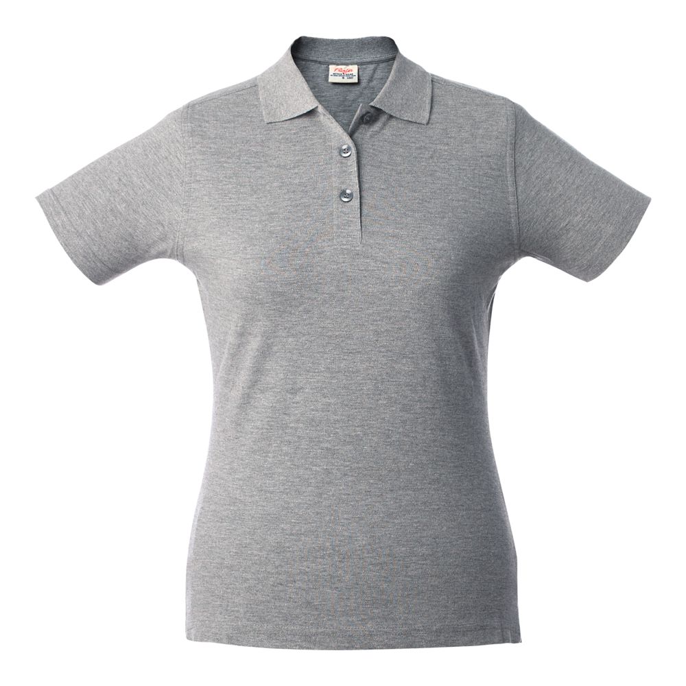 Классическое женское поло-пике с нижними разрезами по бокам, гладким воротником и пуговицами в тон материала.