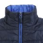 Приталенная модель, воротник-стойка. Застежка-молния в цвет жилета, два боковых кармана на молнии в цвет подкладки, окантовка по низу жилета тон в тон.