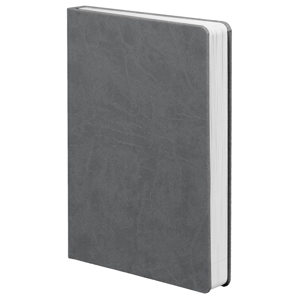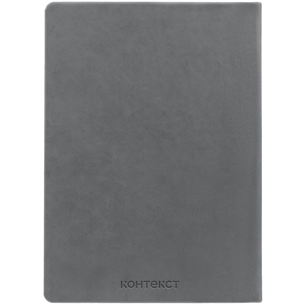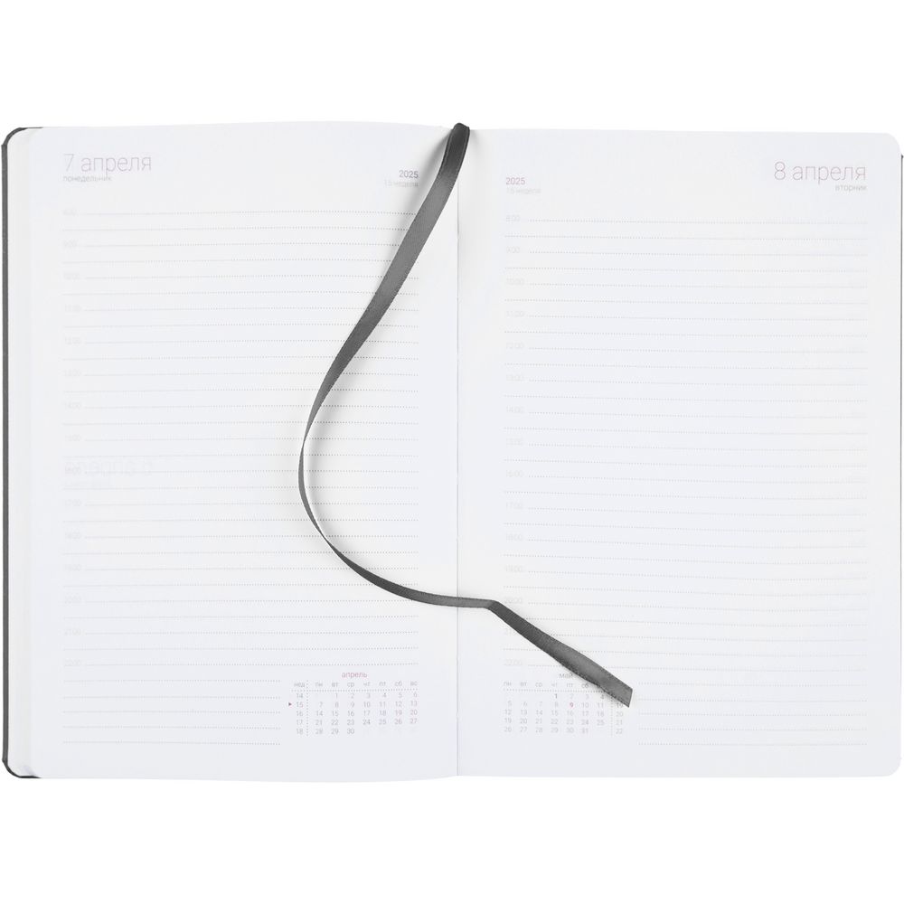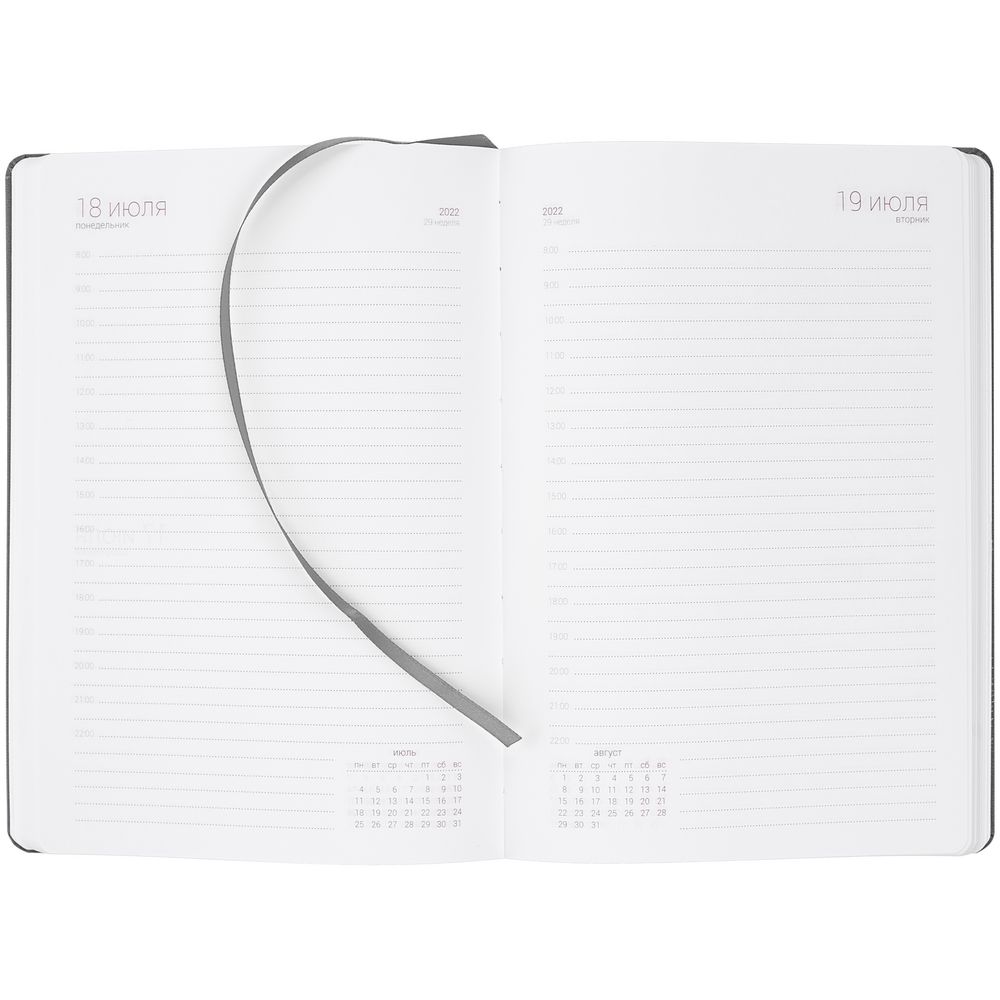 Ежедневник с твердой обложкой, выполнен из материала Brand, серый ЕЕ, дополнен ляссе в цвет обложки.