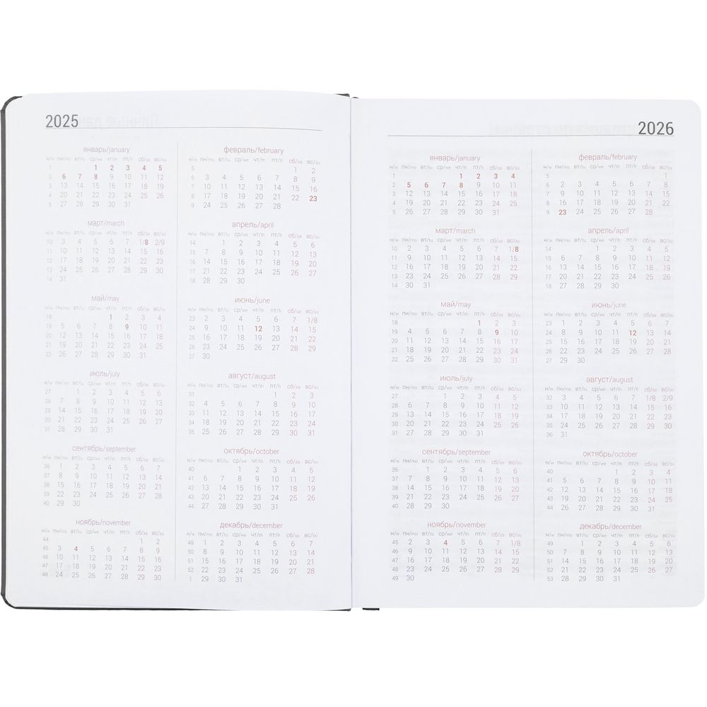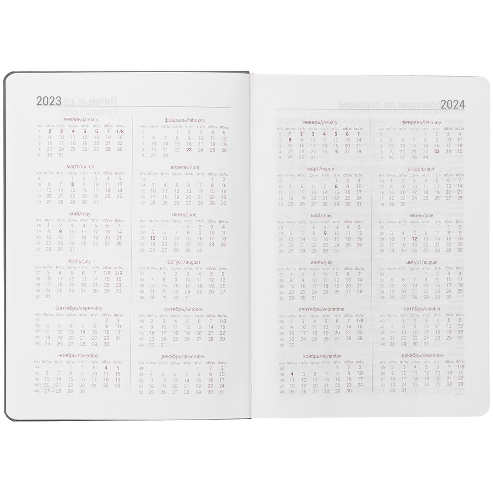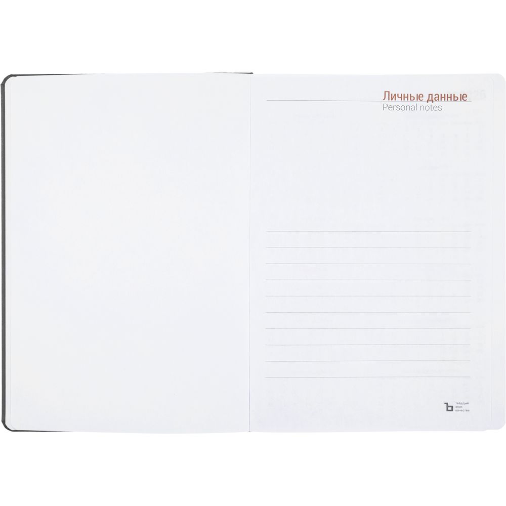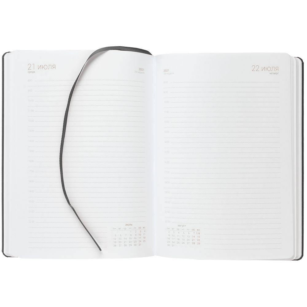 Ежедневник с твердой обложкой, выполнен из материала Brand, серый ЕЕ, дополнен ляссе в цвет обложки.