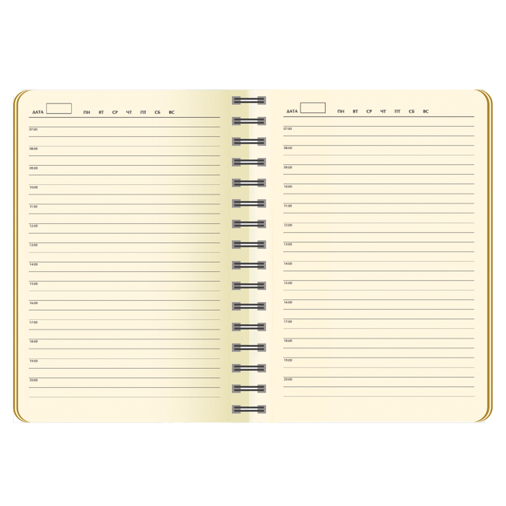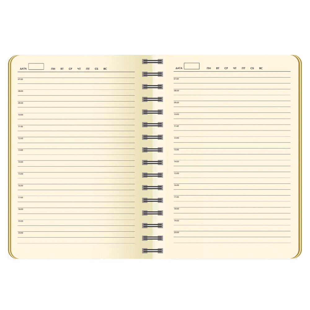 Недатированный ежедневник.Материал : Термо ПУ. Гибкая обложка (двойной ПУ), отстрочка по периметру, полускрытая пружина (окрашена в цвет внутренней обложки), цветной форзац, вкладыш с цветными стикерами, индивидуальная упаковка.