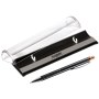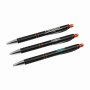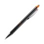 Шариковая ручка.Нажимной механизм, стержень – канцелярский, пищущий узел – 1 мм;Алюминиевый корпус, покрытие: черный матовый;Элементы отделки: хромирование – оранжевый;Силиконовые элемнеты для удобства письма;