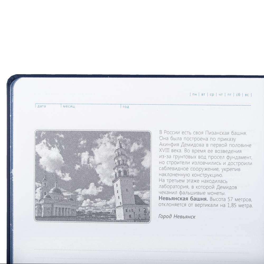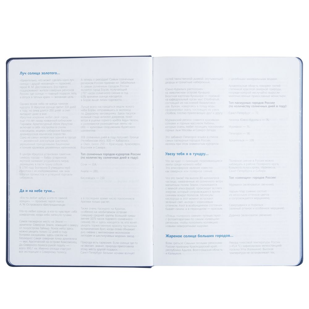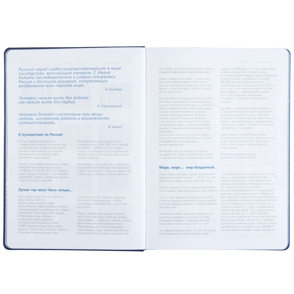 Часть разворотов ежедневника снабжена описаниями интересных и памятных мест России и их фотографиями, а в конце оставлены страницы для описания собственных впечатлений о путешествиях.