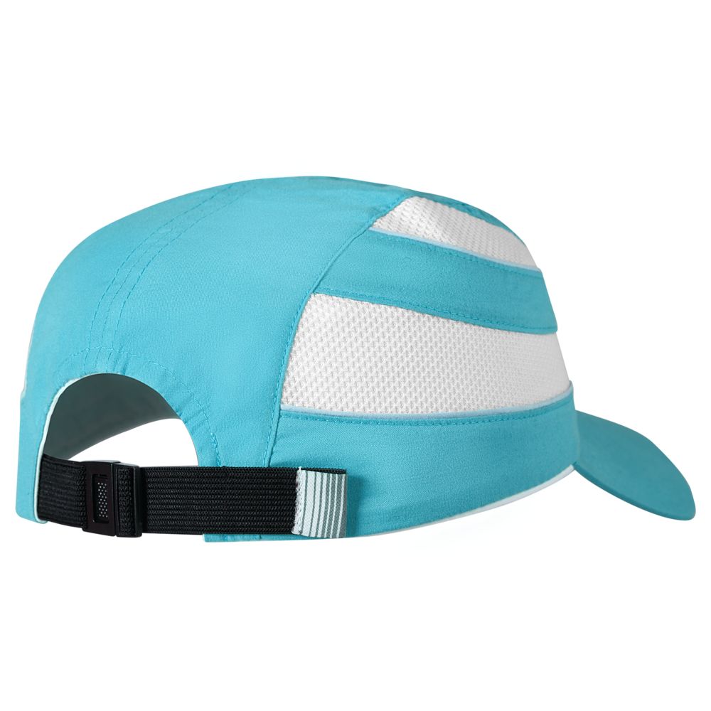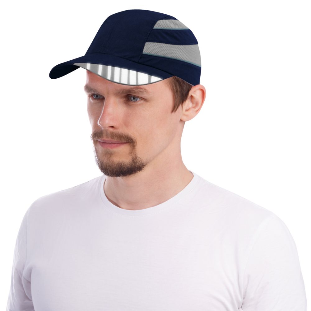 Сетчатые вставки по бокам и светоотражающие полоски на козырьке.