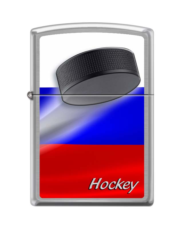 Зажигалка ZIPPO Российский хоккей, с покрытием Brushed Chrome, латунь/сталь, серебристая, матовая, 36x12x56 мм