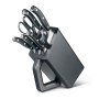 Набор из 6 кованых приборов VICTORINOX: 2 ножа для мяса, нож для стейка, нож сантоку, нож шеф-повара, ножницы, в подставке из древесины бука с антрацитовым покрытием высотой 38,5 см