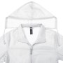Капюшон убирается в воротник. Манжеты на резинке, утягивающий шнур по низу, два кармана на молнии.