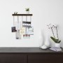Необычное панно для фотографий: тонкие металлические цепочки с зажимами каскадом спадают с деревянной планки-полочки. Планка крепится к стене и может быть использована как подставка для небольших аксессуаров. Шурупы и дюбели входят в комплект.