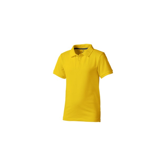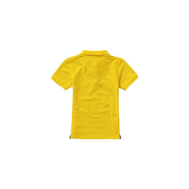 Детская рубашка поло с короткими рукавами Calgary. Стандартный покрой. Мужская и детская модели на двух пуговицах. Опущенный плечевой шов, цепная строчка. Боковые разрезы с атласной лентой внутри. Детали со швами Pick-Stitch. Принт лого сзади в тон изделия. Атласная лента внутри горловины. Полумесяц. Резинка 1х1 на воротнике и манжетах. Трикотажное пике, 100% хлопок. 200 г/м?.