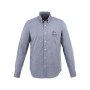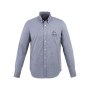 Рубашка с длинными рукавами Vaillant. Стандартный покрой. Белые пуговицы с гравировкой Elevate. Вторая петелька для пуговицы внизу с оранжевой строчкой. Манжеты с двумя пуговицами для регулирования размера. Рукав с разрезом на пуговицах. Принт лого сзади в тон изделия. Сатиновая вставка внутри горловины. Мужская модель с пуговицами на воротнике. Оксфорд, 100% хлопок. 40x32/2, 110x50.