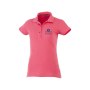 Женская рубашка поло с короткими рукавами Advantage. Прилегающий покрой. Воротник 1х1. Пуговицы с гравировкой. Двухцветная лента внутри на горловине. Принт Slazenger сзади. Пике, 100% хлопок. 160 г/м?.