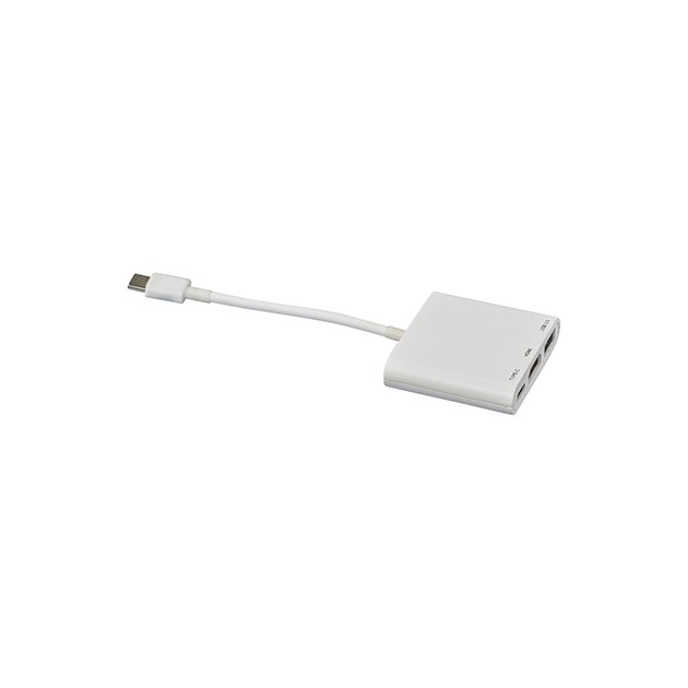 Мультимедийный адаптер Trio AV. Мультимедийный адаптер Type C включает HDMI адаптер, который поддерживаеи видео с разрешением до 4К и совместим практически со всеми мониторами, проэкторами, телевизорами HD и другими девайсами с портом HDMI. Адаптер так же оснащен портом Type C, который поддерживает только зарядку, и портом юсб 3.0, который поддерживает быструю зарядку и передачу данных. Упакован в коробку Avenue. Пластик.