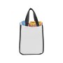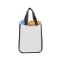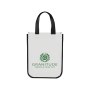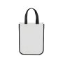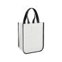 Маленькая ламинированная сумка для покупок. Открытое основное отделение. Ламинированный материал не пропускает воду и его легко чистить. Высота ручек 16,5 см. Ламинированный нетканый полипропилен 80г.