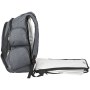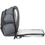 Рюкзак Proton для ноутбука 17", удобный для прохождения досмотра. Эксклюзивный дизайн, отделение для ноутбука, которое удобно располагается на ленте при прохождении досмотра в аэропорту, что ускоряет его и делает более безопасным. Боковое отделение для большинства ноутбуков 17". Основное отделение на молнии с разделителями для документов, внутренними боковыми карманами и регулируемым эластичным органайзером Tech Trap. Карман на молнии для медиаустройств с держателем для наушников. Передний карман на молнии с брелоком. Передний нижний карман и скрытые карманы для ценных вещей. 3 боковых просторных кармана на молнии. Стропа сзади для крепления к чемодану. Нейлон Dobby с материалом Scuba.