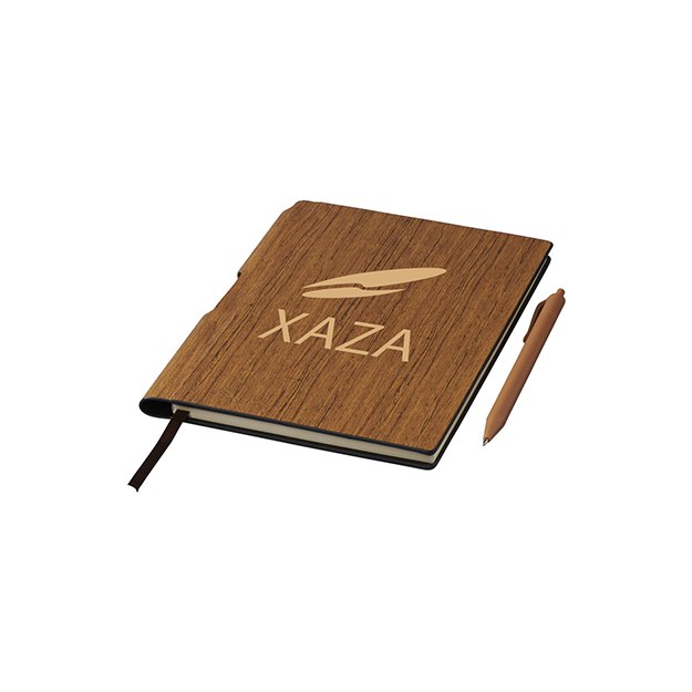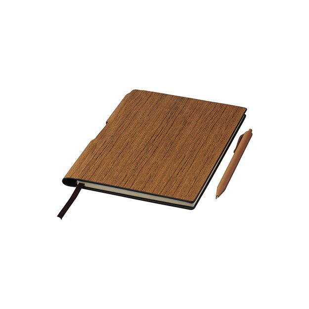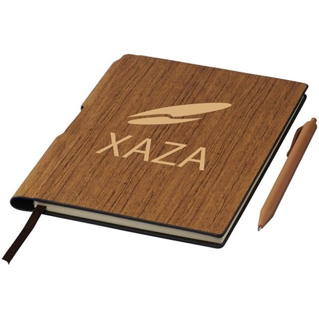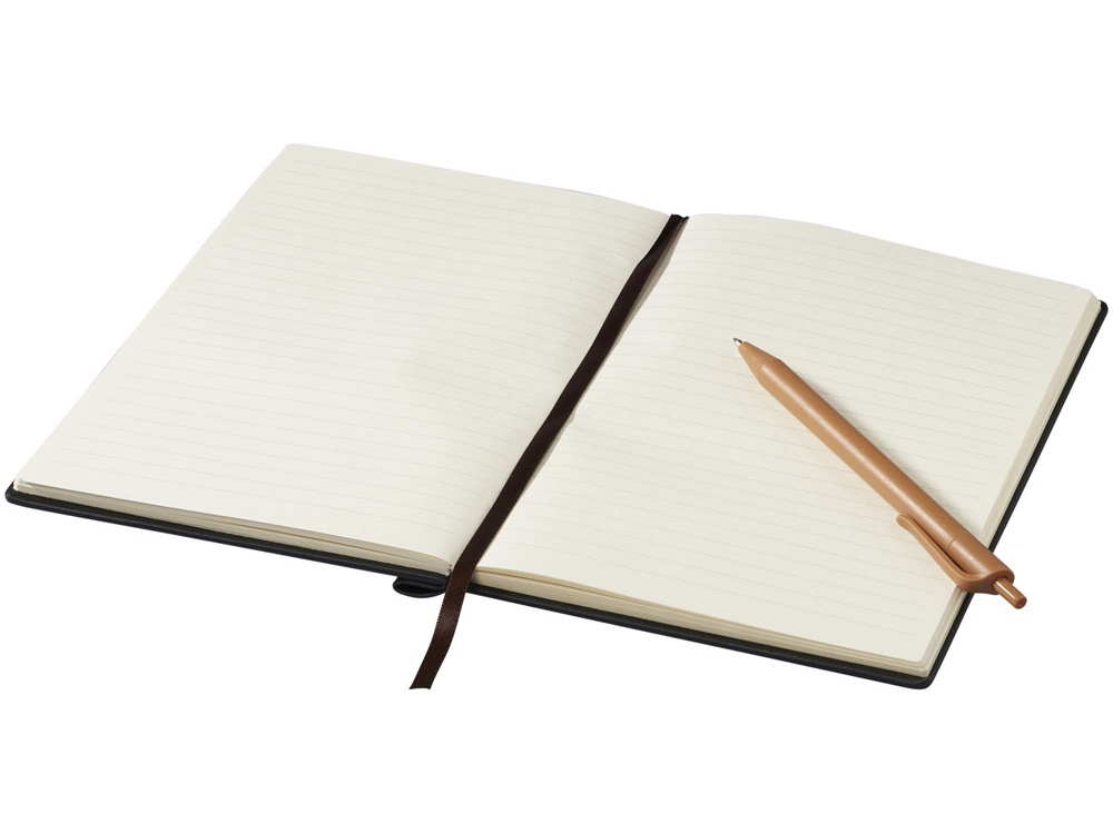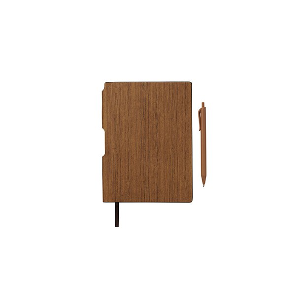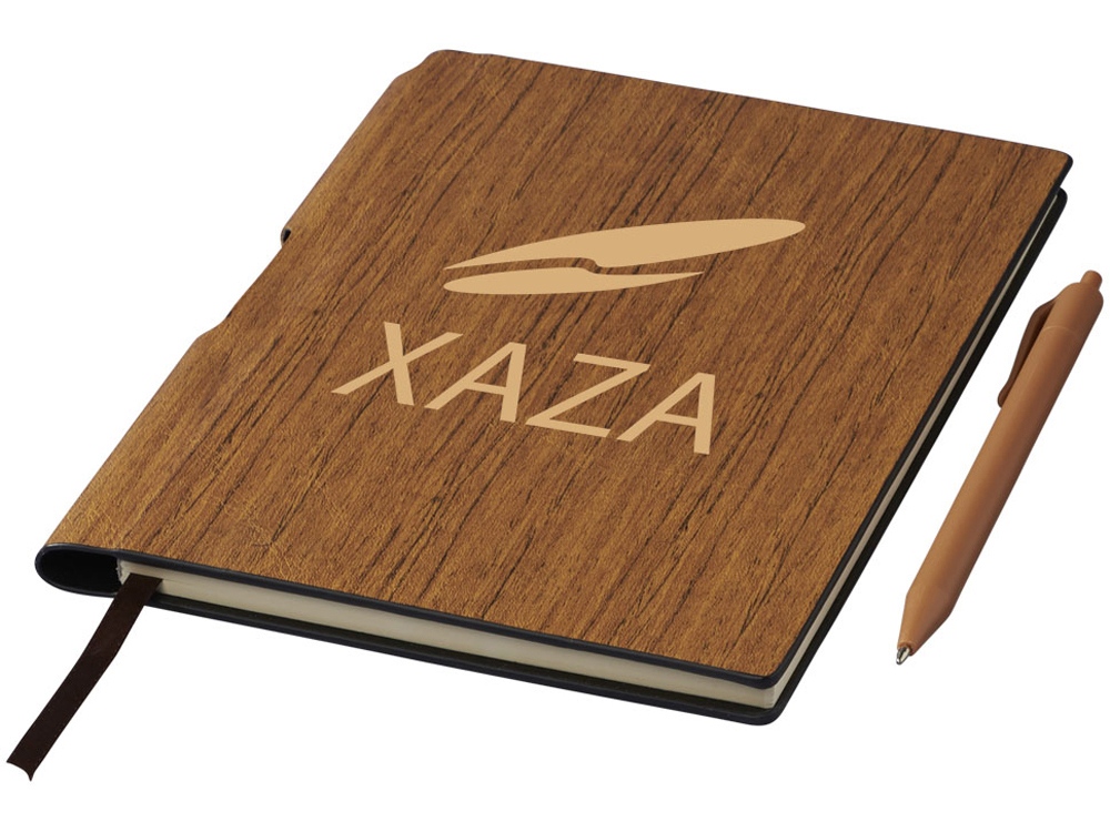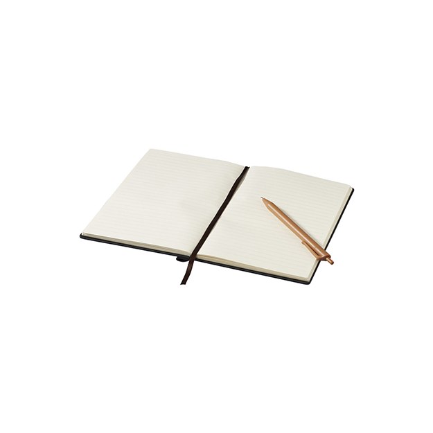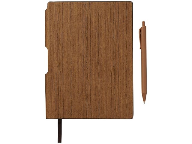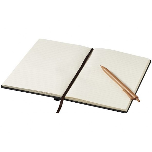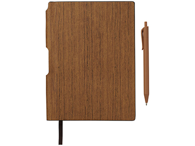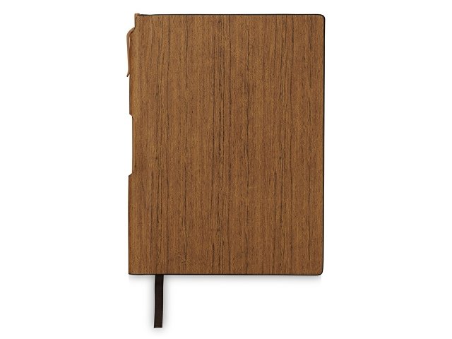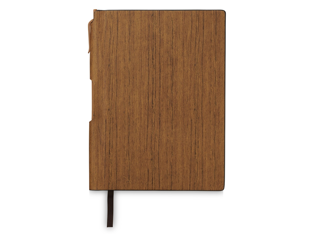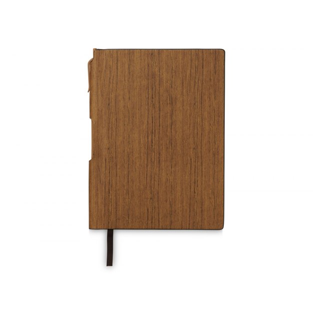 Блокнот Bardi A5. Блокнот формата А5 с обложкой на вид как из дерева. 80 листов бежевой линованной бумаги (70г/м2) и ручка в цвет прикреплена к корешку. Бумага.