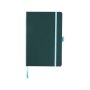 Цветной блокнот Melya. Стильный блокнот (размер А5 для ориентации) для креативных профессионалов, чтобы делать заметки, наброски или рисовать. Обложка различных цветов с эластичной застежкой в цвет и закладкой придает блокноту особый, свежий вид. 40 листов кремовой линованной бумаги (80 г/м2) и 40 листов чистой бумаги (80 г/м2) с кармашком для заметок и бумаг. Упакован в коробку-рукав. Бумага в виде кожзаменителя.