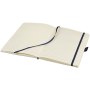 Блокнот Revello. Мягкий на ощупь, гибкий блокнот (размер А5 для ориентации) со встроенной эластичной застежкой, закладкой, петелькой для ручки и кармашка для документов на внутреннем форзаце сзади. 80 листов кремовой линованной бумаги (80г/м2). Упакован в черную коробку-рукав. Кожа ПУ.