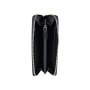 Кошелек закрывается на молнию, включает в себя: одно отделение на молнии, два отделения для купюр, два универсальных отделения, двенадцать отделений для кредитных карт.