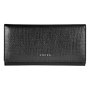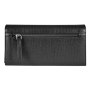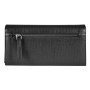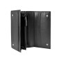 Кошелек закрывается на две кнопки, включает в себя: два отделения для купюр, одно отделение на молнии, восемнадцать отделений для кредитных карт, два универсальных кармана, один скрытый карман. С оборотной стороны кошелька есть универсальное отделение на молнии.
