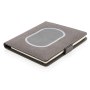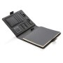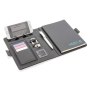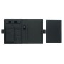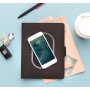 Органайзер Air формата A5 выделяется среди прочих благодаря инновационной технологии беспроводной зарядки, которую поддерживает встроенный в его обложку аккумулятор емкостью 4 000 мАч. Эта функция поддерживается моделями Android последнего поколения, а также iPhone 8, 8S и X. Другие устройства можно подзарядить, подключив свой кабель к аккумулятору через USB-порт, который благодаря продуманной конструкции после окончания использования убирается обратно в обложку. Также в органайзере предусмотрены отделения для проводов и ручки, кармашки для карт, подставка для телефона и съемный блокнот на 64 линованных листа плотностью 80 г/м2. Показатели на входе: 5В/1A; на выходе: 5В/2,1A; для беспроводной зарядки: 5ВТ. Зарегистрированный дизайн®