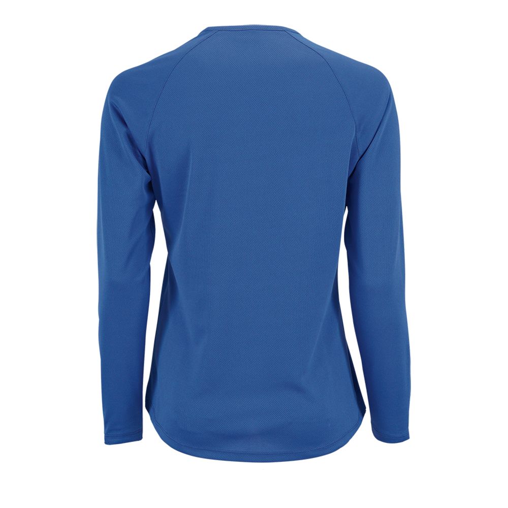 Футболка приталенного кроя из спортивной сетки с длинным рукавом реглан и круглым вырезом. Низ изделия и низ рукавов с двойной отстрочкой, горловина обработана бейкой.