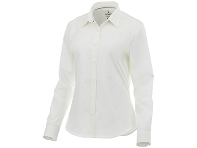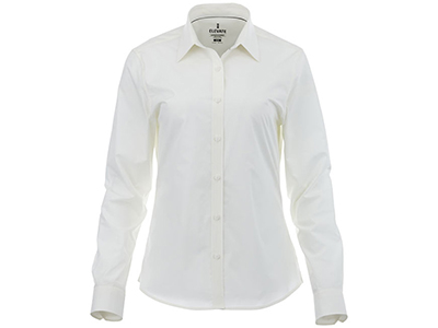 Женская рубашка с длинными рукавами Hamell. манжет на одной пуговице. Атласная окантовка внутренней части горловины. Швы моделирующие фигуру и приталенный крой. Гравированные пуговицы в цвет изделия. Комфортный ярлык-трансфер на изделии. Поплин из 96% хлопка и 4% эластана. 118 г/м?.