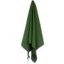 Полотенце изготовлено из микрофибры — современного материала, который легко впитывает влагу в несколько раз больше собственного веса, быстро сохнет, не оставляет ворсинок и не покрывается катышками.