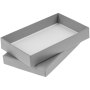Коробка выполнена из переплетного картона, кашированного гладкой дизайнерской бумагой Malmero.
