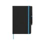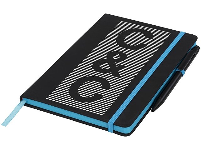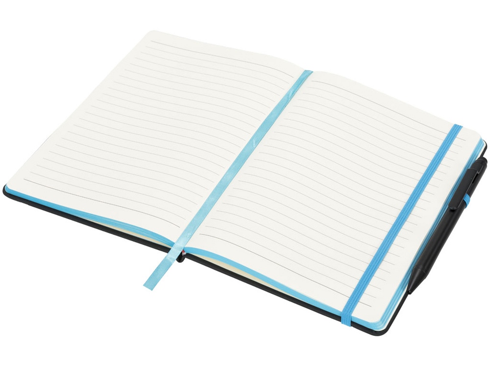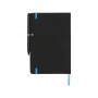 Блокнот Noir Edge среднего размера. Современный и стильный черный блокнот с мягкой на ощупь обложкой. Цветной край и цветные маркеры страниц, застежка-держатель для ручки. Предлагается с черной шариковой ручкой-стилусом. Блокнот содержит 96 листов линованной бумаги (70 г/м?) кремового цвета. ПУ.