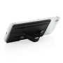 Картхолдер для телефона с защитой RFID изготовлен из PU-материала. Этот картхолдер вмещает в себя до 2 банковских или id карт. Клейкий слой позволяет прикрепить картхолдер к плоской поверхности телефона или его чехла. С внешней стороны картхолдера имеется ремешок, который можно использовать как держатель или подставку для телефона.