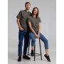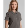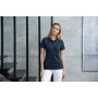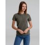 Приталенная женская рубашка поло из гребенного хлопка с пуговицами тон в тон и боковыми разрезами по бокам.