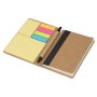Компактный набор включает в себя разноцветные стикеры разных размеров, блокнот с линованной бумагой и ручку c корпусом из переработанного картона. Обложка выполнена из фактурной искусственной кожи, которая, при тиснении, меняет цвет на более глубокий.