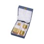 Стильный набор для виски из прозрачного хрусталя рассчитан на две персоны. Набор включает в себя графин, пару бокалов и футляр для хранения. Хрустальная поверхность графина и бокалов задекорирована интересным золотистым узором.