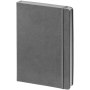 Ежедневник с твердой обложкой, выполнен из материала Brand, серый СС, обрез серого цвета, дополнен резинкой и ляссе серого цвета.